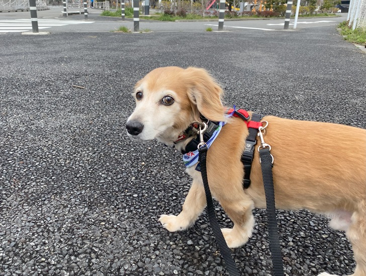 ちょっぴり苦手だったハーネスの着脱も楽しく練習しました♪