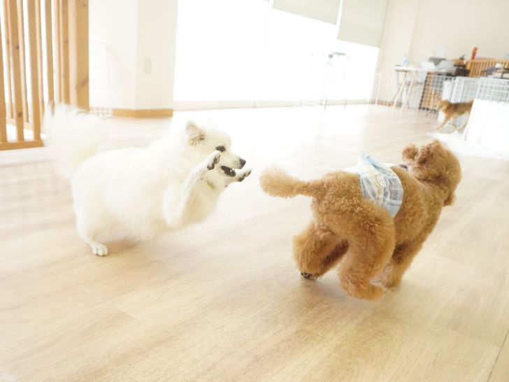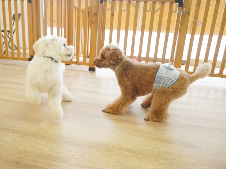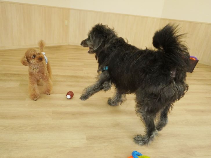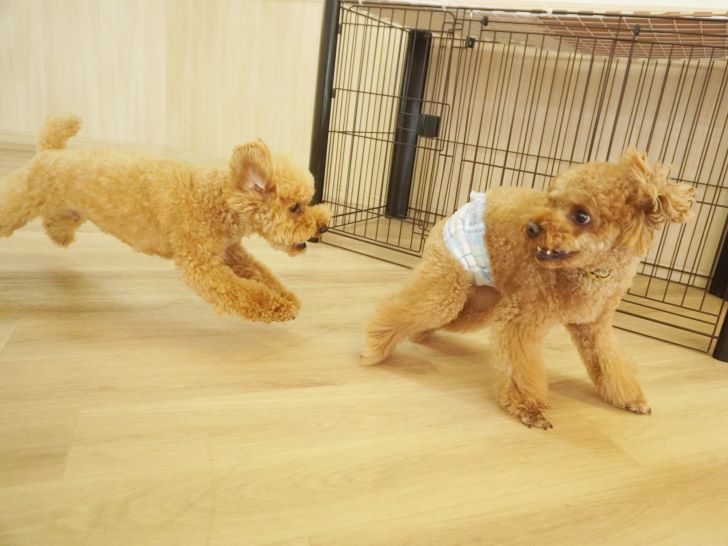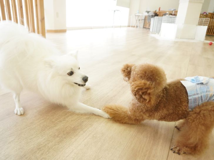 そんなお誘い上手なぽん君は、お泊り中のはなちゃんへも「遊ぼ遊ぼっ」とお誘いをしていましたよ♡