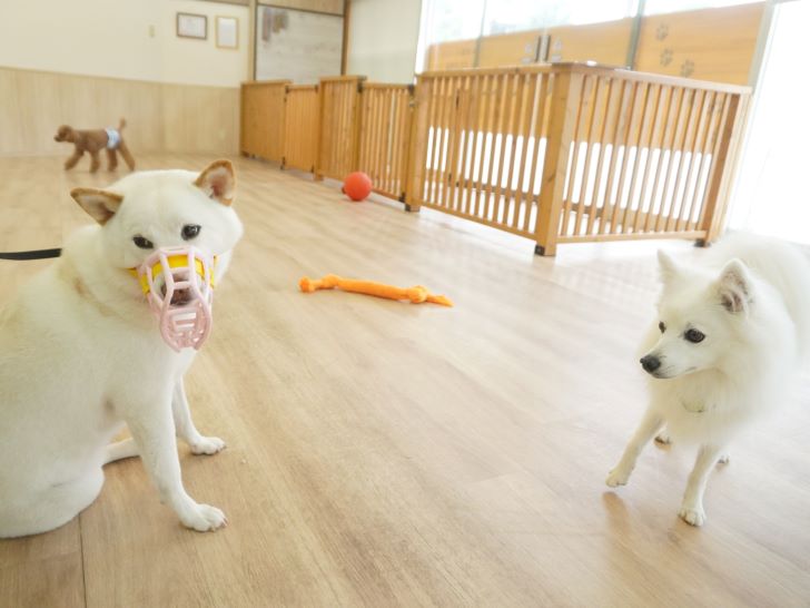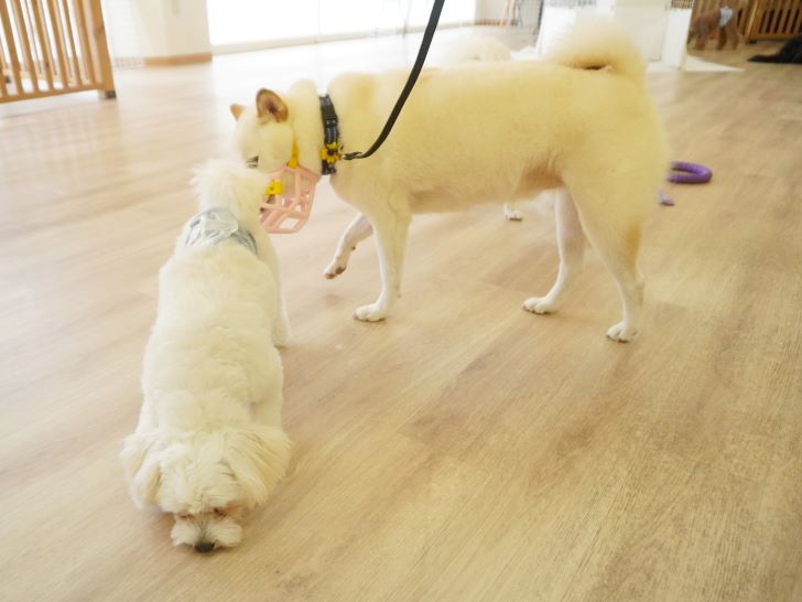 「なんか見られてます…」とティーちゃんを気にして何度もチラ見する鈴ちゃんでしたが、オヤツの為なら!とティーちゃんをスルーしてGETする事が出来ていました☆彡