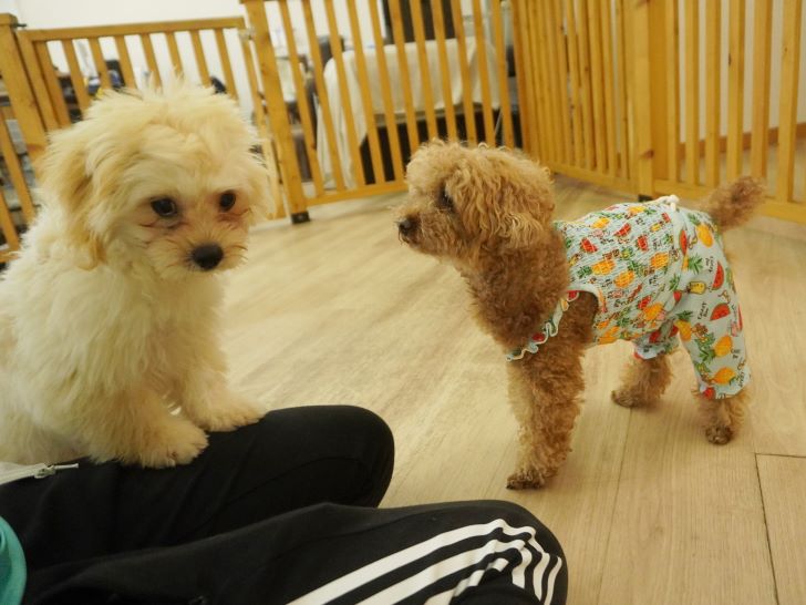 今日は体験で来ていたペキプーの大五郎君と一緒に過ごしました♪