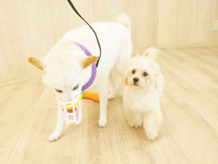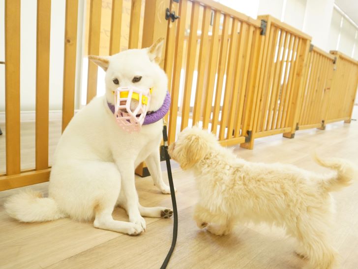 犬馴れ練習では、初めましてのにこちゃんとも練習をしたこなつちゃん♪