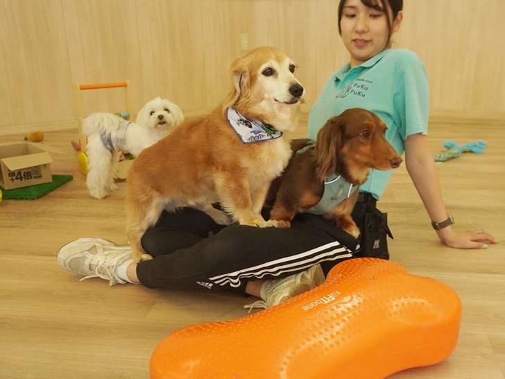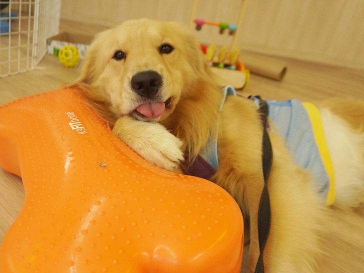 バランスディスクを枕にごろんとして、「全然気にしてないよ~」とゆったり過ごしていましたよ☆