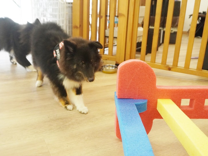 段ボールやコーンの中に隠されたおやつも諦めずに全力で探していました♡