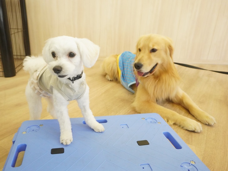 そのあとも、プールの中でお宝探しをしたり、縁にアゴを乗せてお友達を観察したりしていましたが、穏やかにスタッフの呼びかけにも応じてくれていました♡