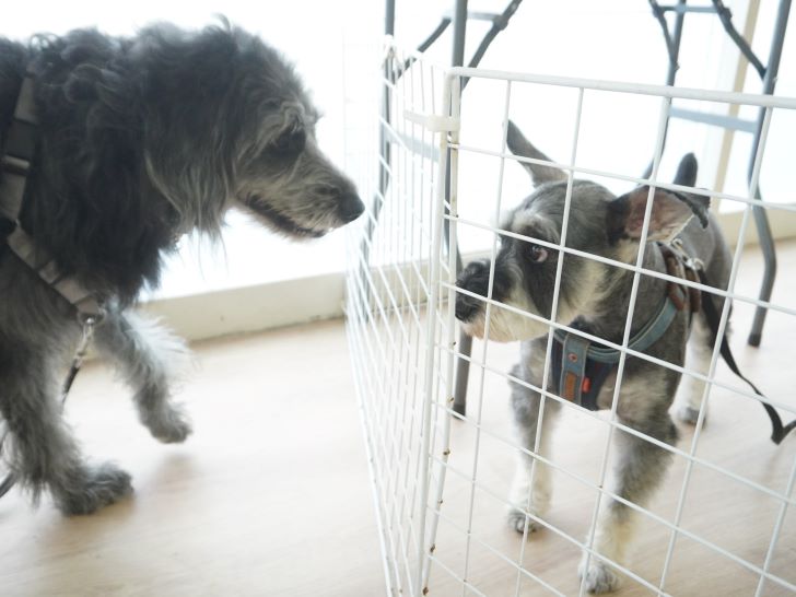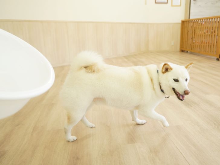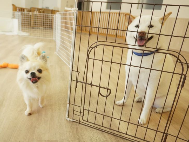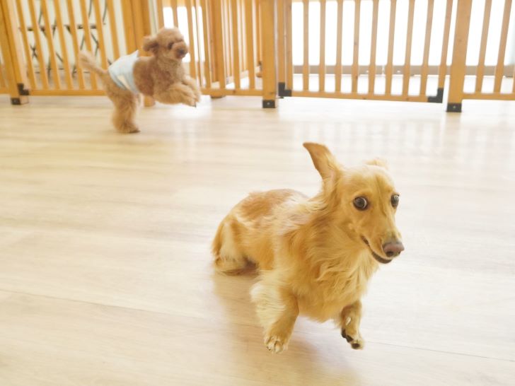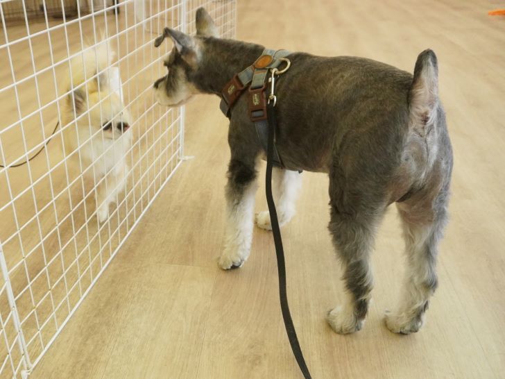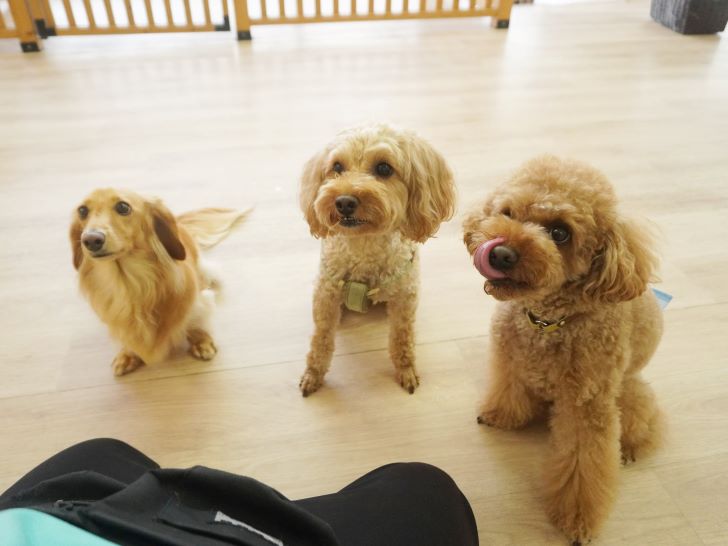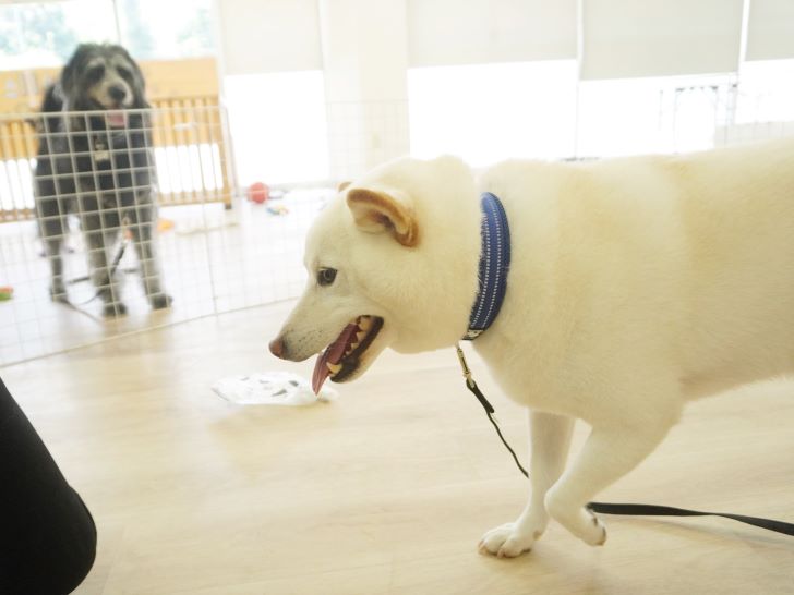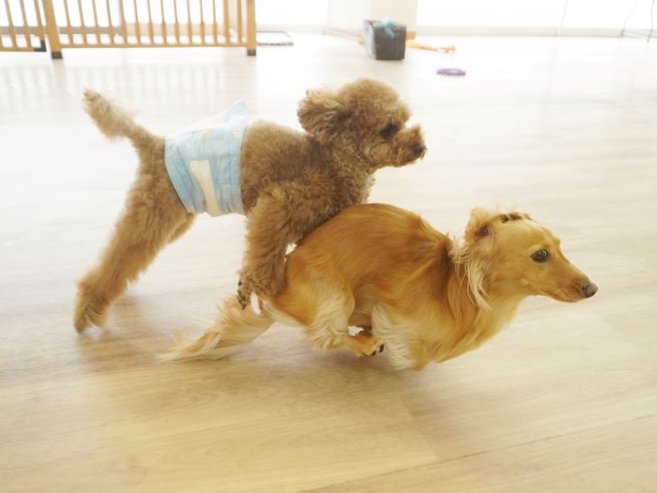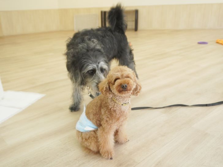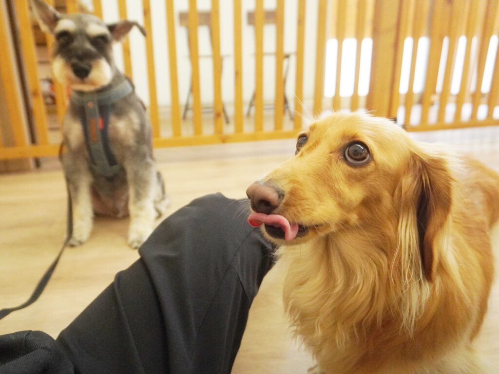 りき君がフリースペースにやって来ると、「ちょっと嗅いじゃおうかな~」とそっとオチリを追いかけていました🍑