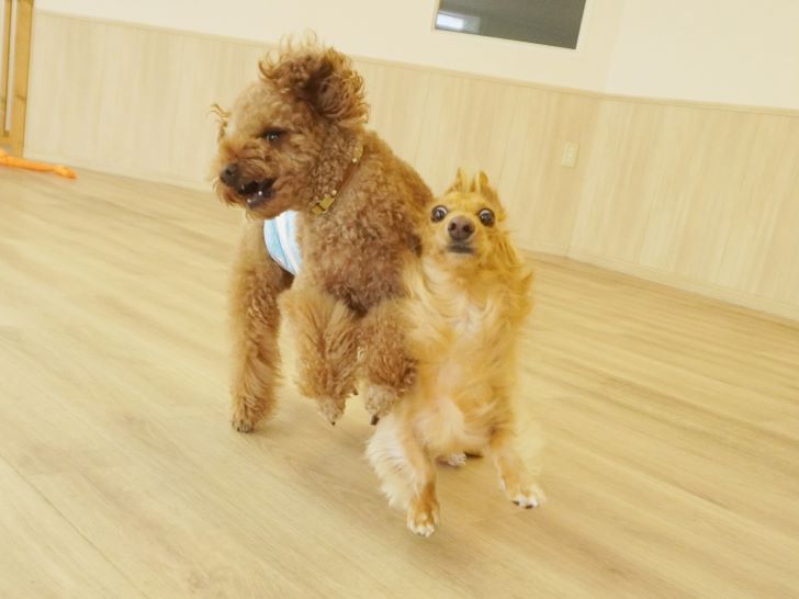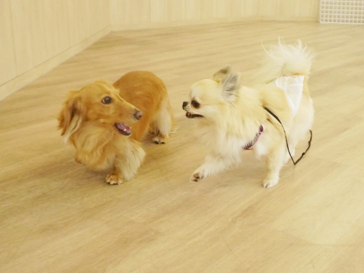 一緒になると、すぐに猛スピードで走って「ついて来れる~??」と仕掛けるレン君と、「もっとやろうよ!」とプレイバウで更に盛り上がっていましたヾ(≧▽≦)ノ