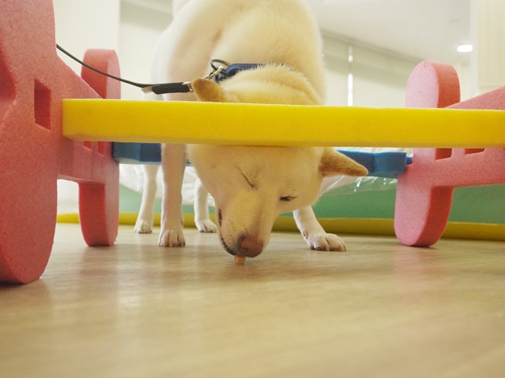 台車に乗ったり、段ボールの中のおやつを探したり、プールの中に入ったりと、色んなことにチャレンジしてくれました☆