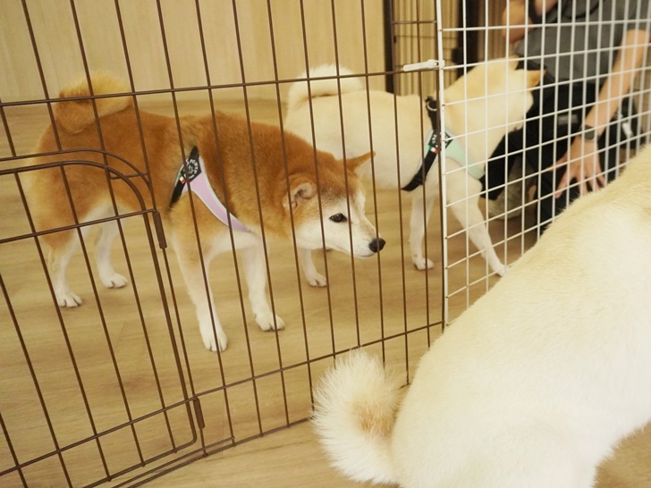 りき君がフリースペース横に出てくると、ハル君は柵越しに「来たな!」とお出迎えに行っていました(∩´∀`)∩