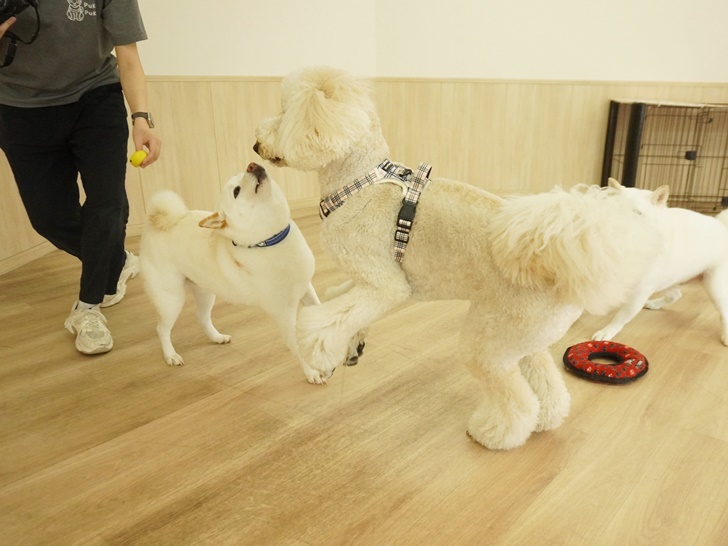 大五郎君が「もう終わりにしたいなー」となったときには、スタッフがチロ君に声を掛けると「はーい!」と止まることもできていました👏♪