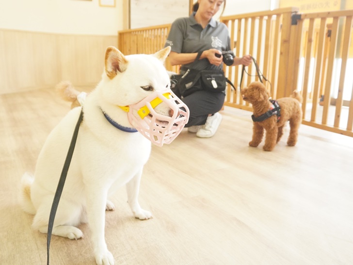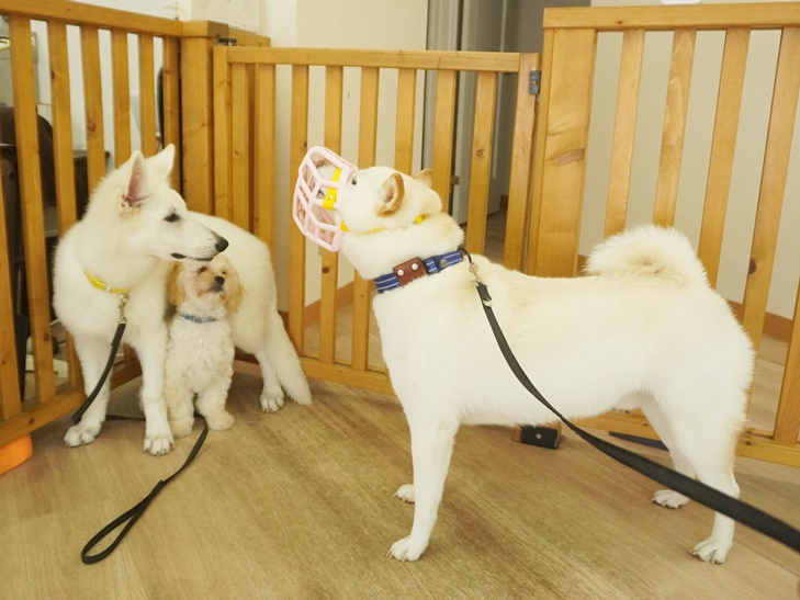 りき君は、マズルガードを着けて小さい子達と、穏やかに挨拶をしてくれていました(*^^*)
