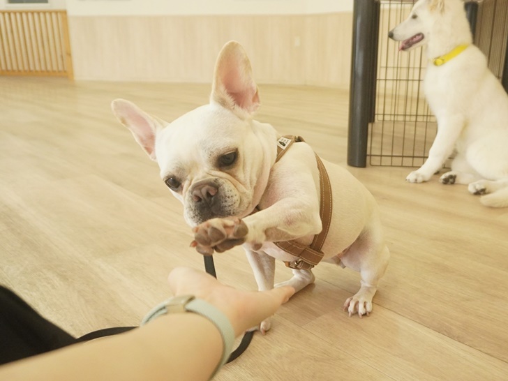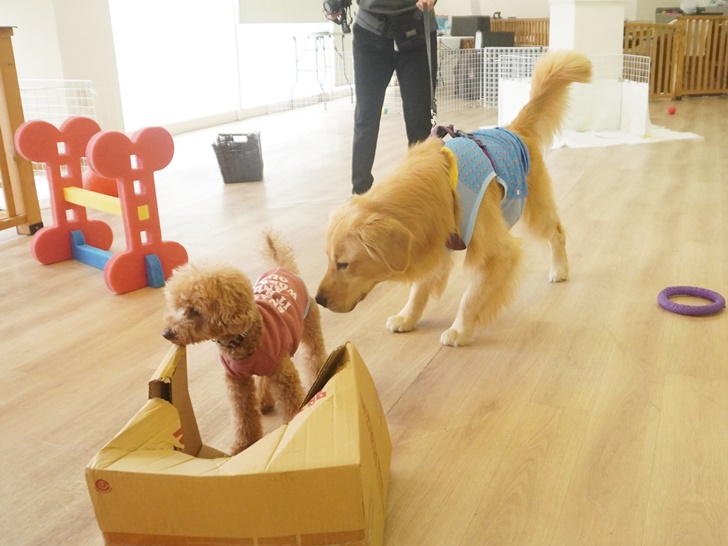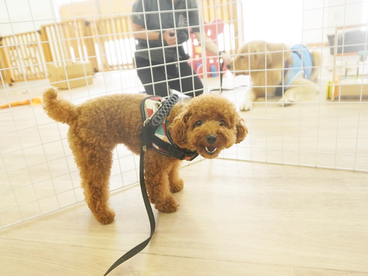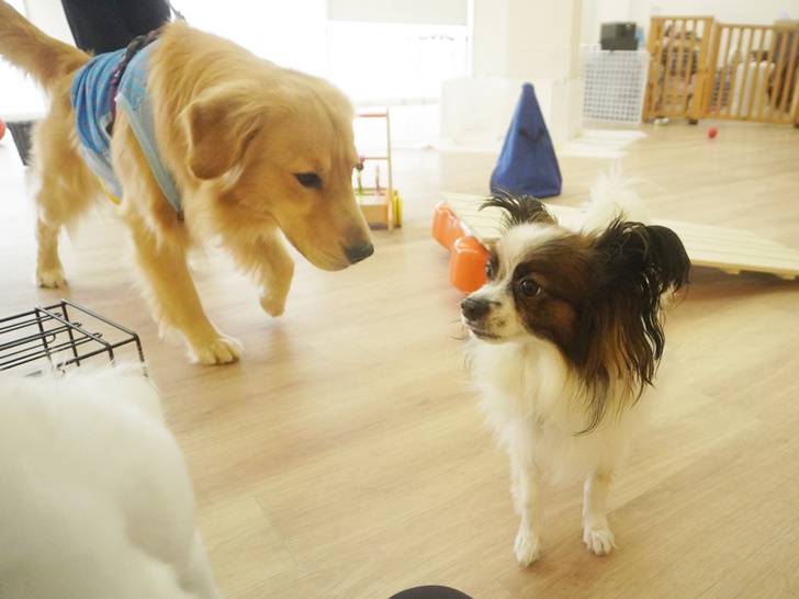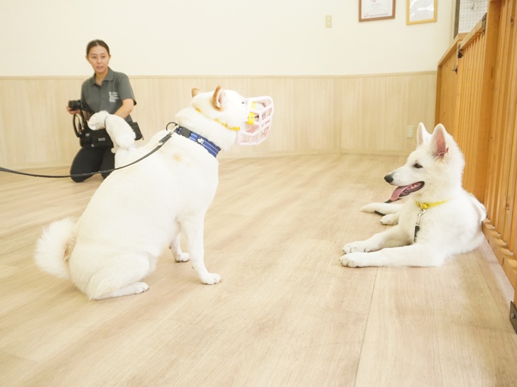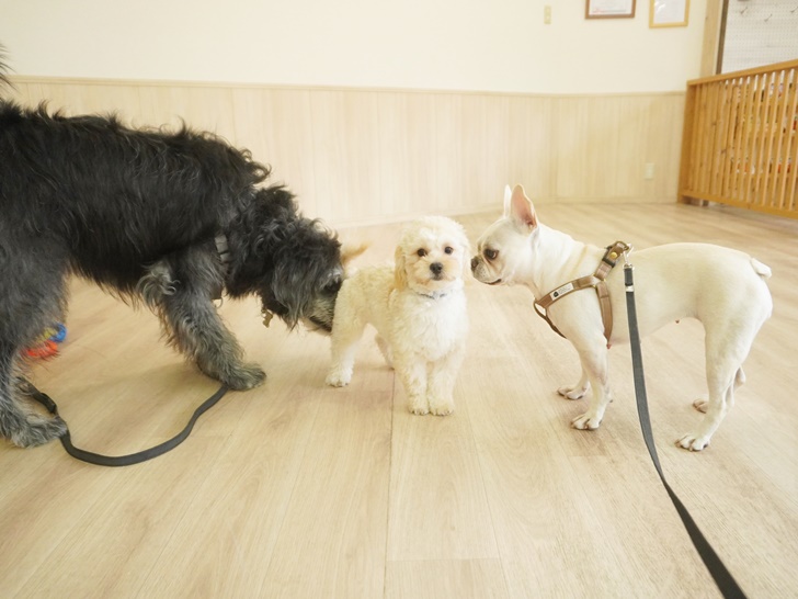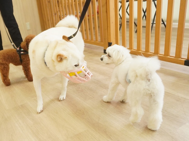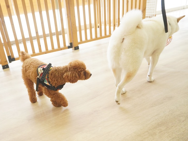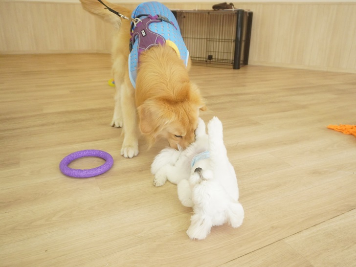 ティーちゃんはかわいい子の登場に「うひゃ~♡」となっていましたが、突進したりすることもなく、スタッフの声を聞きながら、ぱん君のにおいを堪能していましたよ(´艸`*)