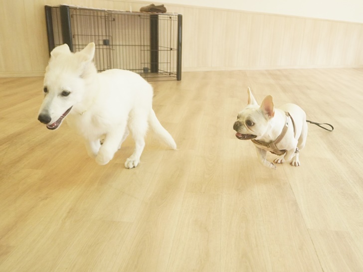 大五郎君が逃げるとネージュちゃんが追いかけて、ネージュちゃんが逃げると大五郎君が追いかけて・・・周りのみんながポカンとしてしまうくらいの大迫力で走ったり、ワンプロしたりと大盛り上がりでした(笑)