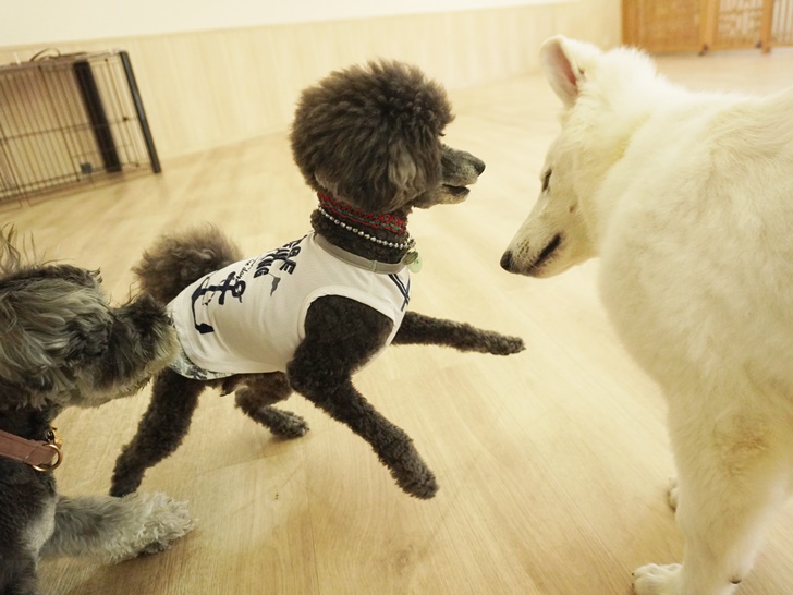 にこちゃんはりき君のことが気になりつつも、仲良しのネージュちゃんと思いっきり走り回っていました♫