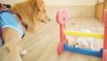 マイペースにおもちゃ遊びをするルピ君に、「あたしと遊んでよ~!!」と大ジャンプで遊びのお誘いをしていました(≧◇≦)