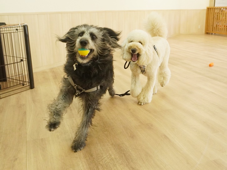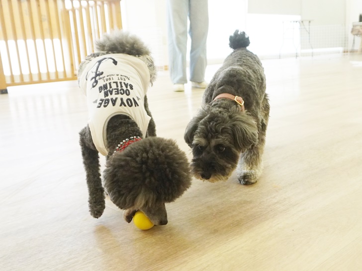 最初はネージュちゃんのイケイケっぷりに引いていたういちゃんでしたが、ボールの取り合いっこですぐに打ち解けていましたよ✨
