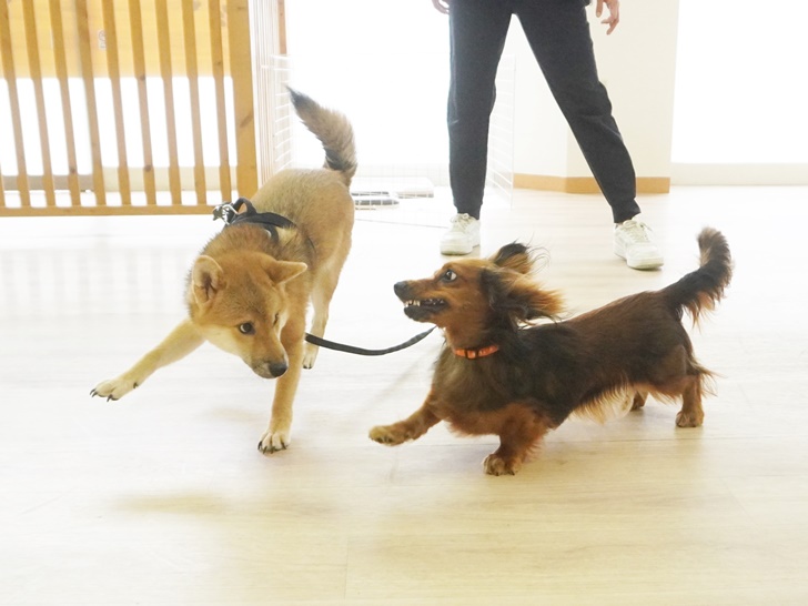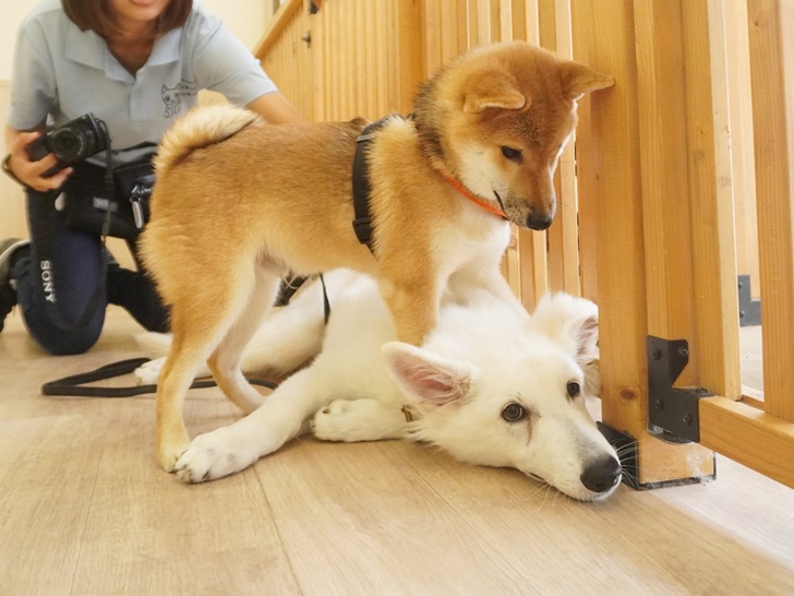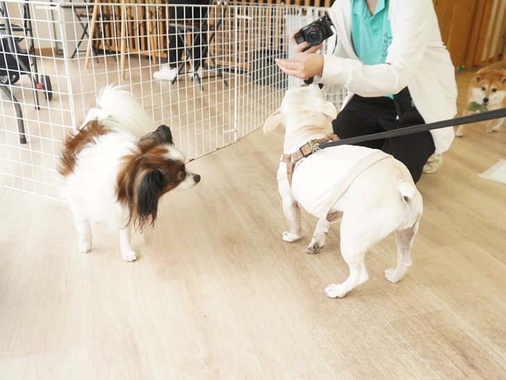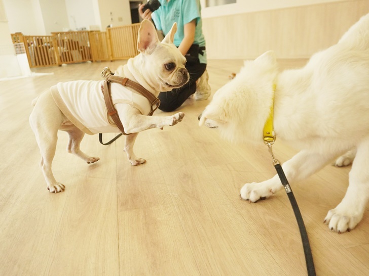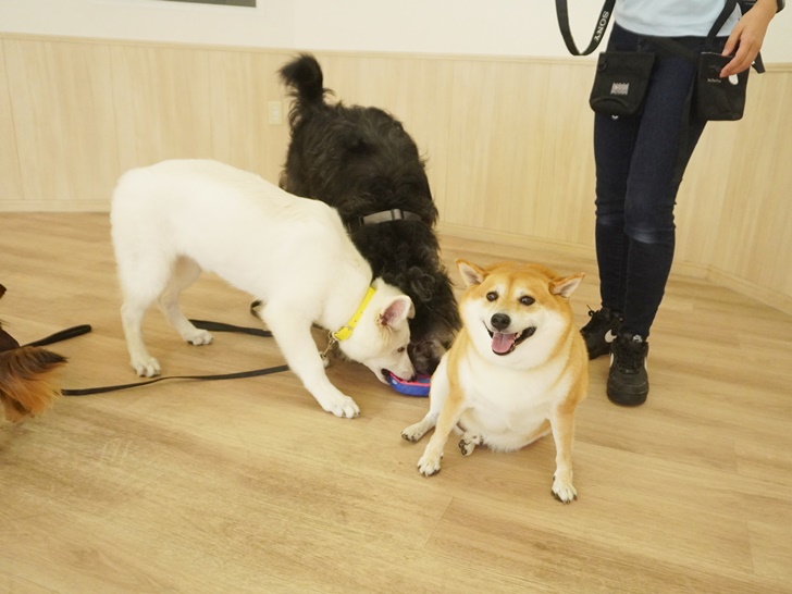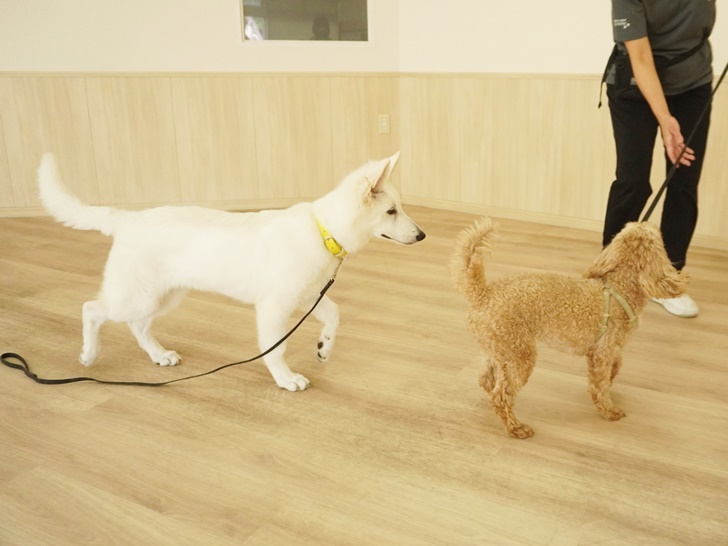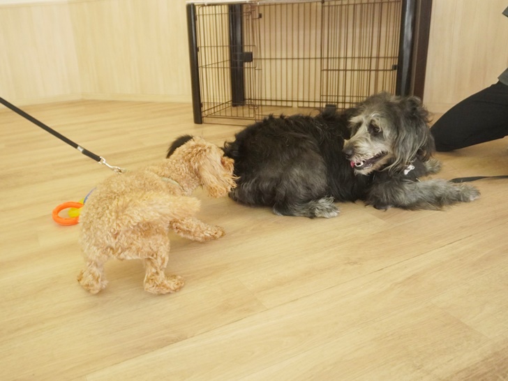 ぎょうざちゃんの登場に大興奮だったルピ君とネージュちゃんでしたが、一旦落ち着くように促すと、しっかり伏せながら穏やかに一緒に過ごすこともできました👏♡