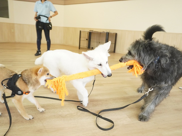 チロ君は自分より大きなふたりを相手に負けることなく「ちょうだいよー!」と全力で引っ張っていました☆