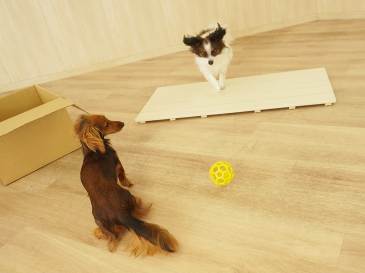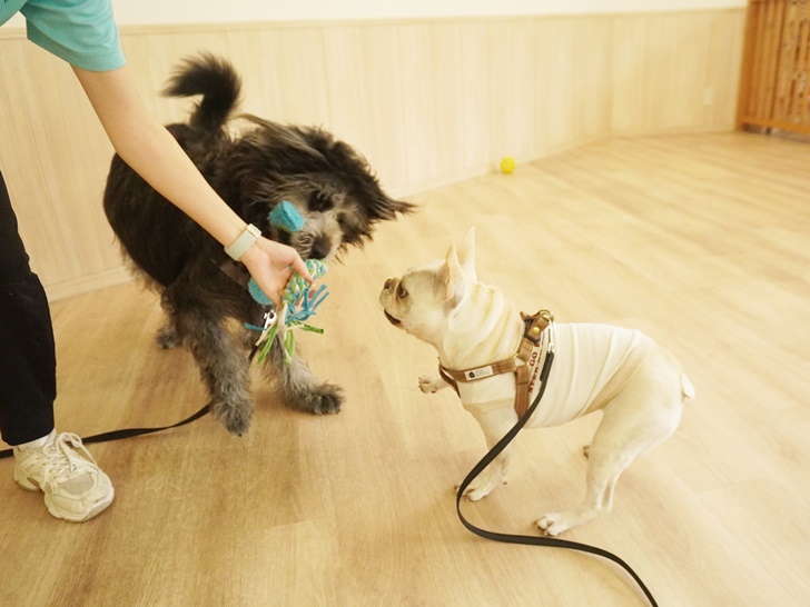 ヒートアップしすぎないように休憩をはさみながら遊んでもらいましたが、休憩中もトワちゃんは「もっと遊ぼうよー☆」とチロ君の元にアピールにきていました♪