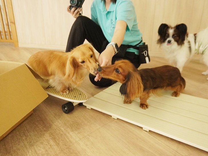 おかげでぱん君も「ちょっと確認させてもらおうかな~」と自分からぎょうざちゃんのにおいチェックをしに行くことができていました👏☆