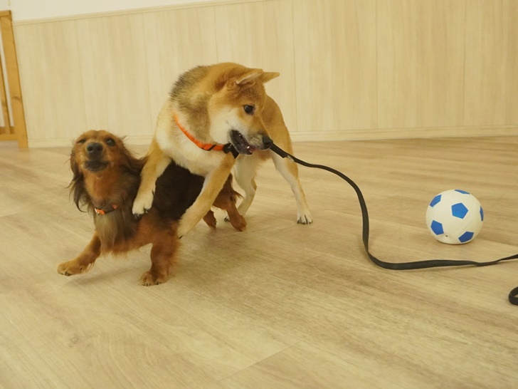 朝イチは、チロ君との運動会を開催していたトワちゃんでした(≧▽≦)