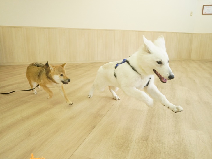 後からフリースペースにやって来たチロ君へ「さっ!あたしを捕まえてみて~♫」とノリノリでお誘い&ダッシュを始めていました(=゚ω゚)ノ