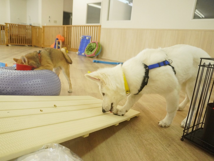 慎重さんのネージュちゃんは、そろりそろりとチャレンジしていましたが、スノコの上をプルプルしながら登る事ができたのでした\(^o^)/