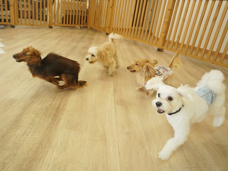 みく君、トワちゃん、光汰君、ノア君は、フリースペースを爆走していました🐾♡