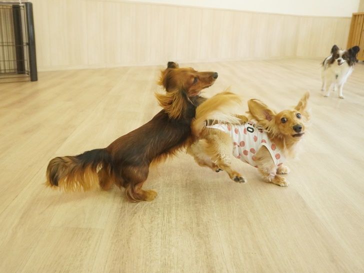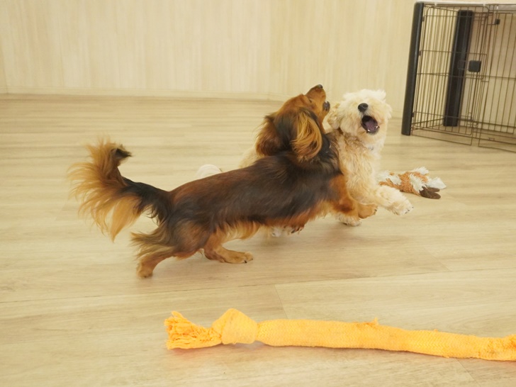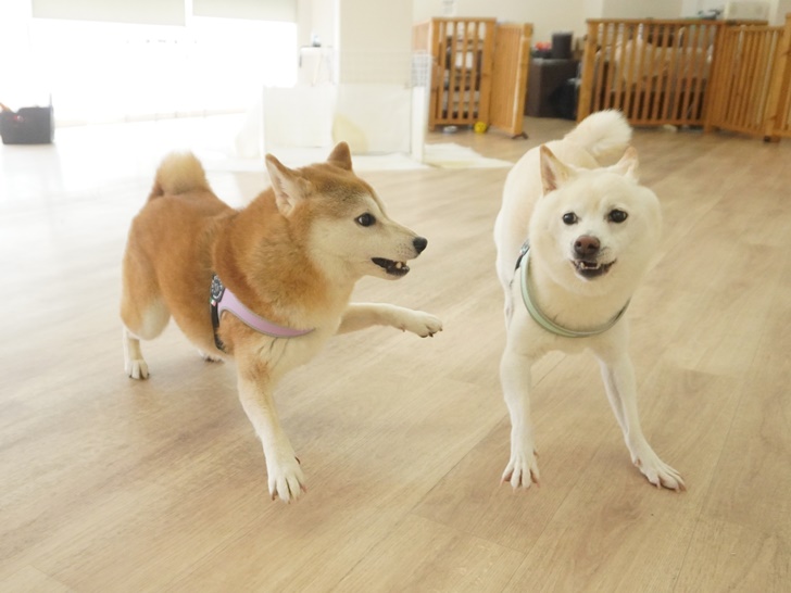 パンチしたりダッシュしたりと跳びはねたりと遊び方はダイナミックですが、決してお互いを傷つけることはなく、上手に遊んでいました👏☆