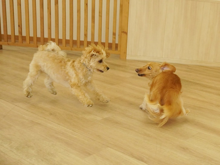 ですが光汰君はこちらでもめげずに「遠慮せず♪」と目の前で走り始めると、ぱん君も思わず誘いに乗ってしまうのでした♡