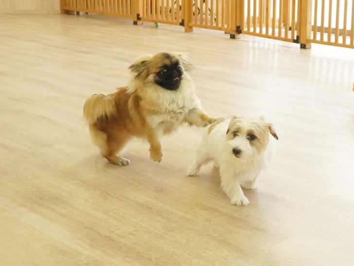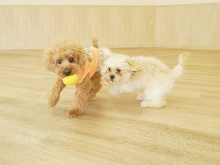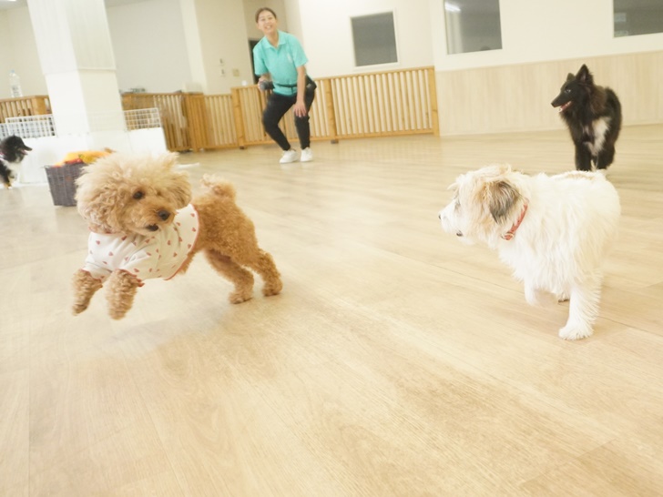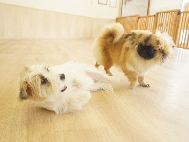 はなちゃんがフリースペースに出ると、ポムちゃんが元気よく「一緒に走ろうよ~」とアピールをしてきました♫