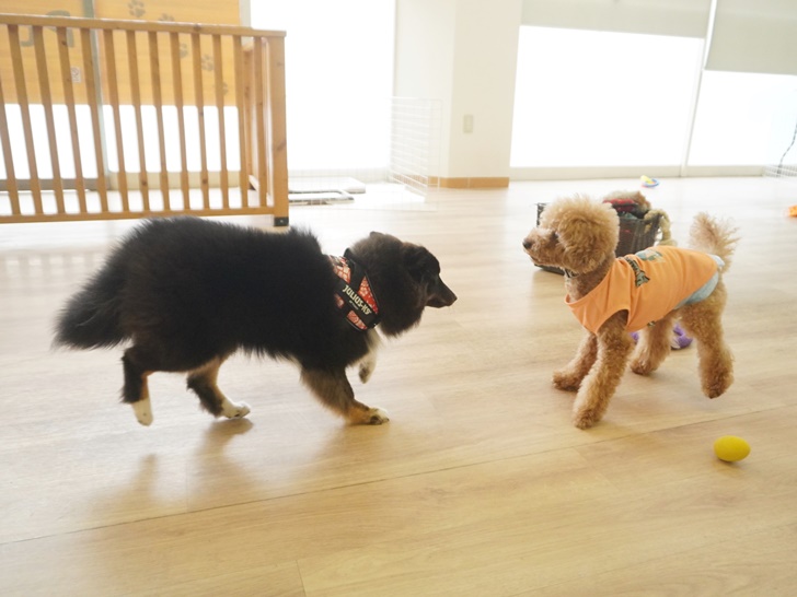 終わりの頃には、ビビアンちゃんがコッソリ近づいてオチリをクンクンしましたが、「いいよ~」とへっちゃらなティーちゃんなのでした✨