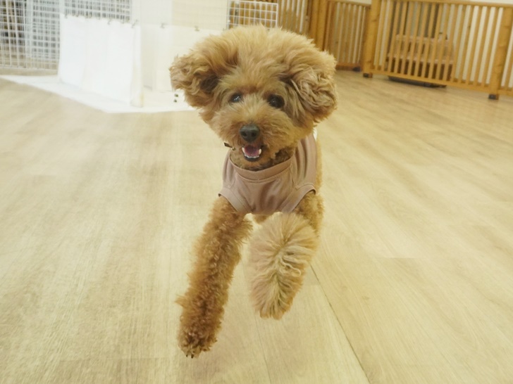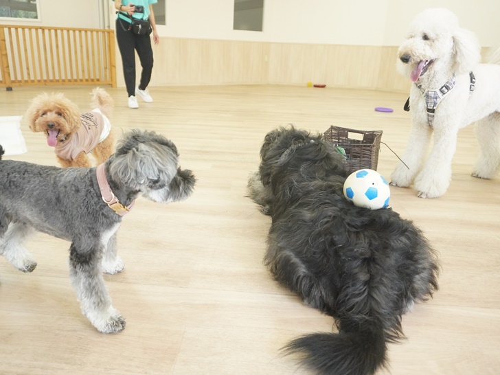 フリータイム後には、ティーちゃんの犬馴れ練習に付き合ってもらいました○