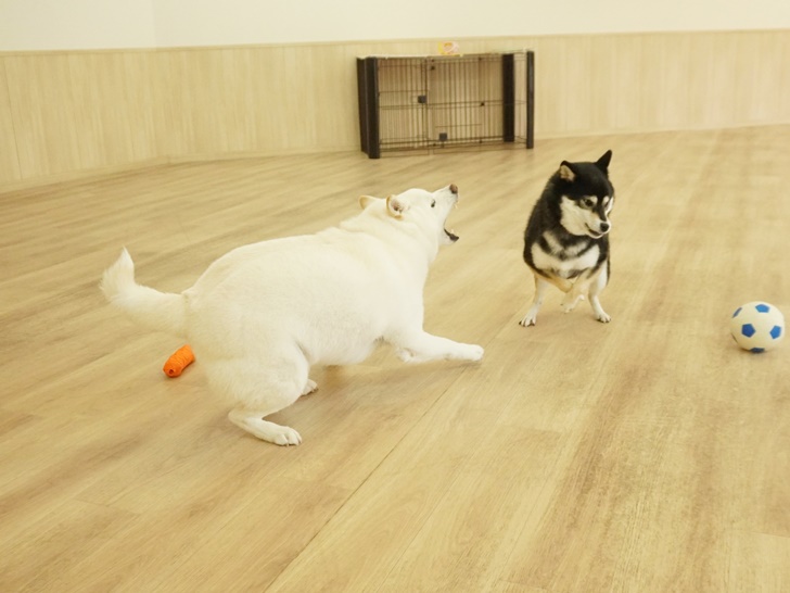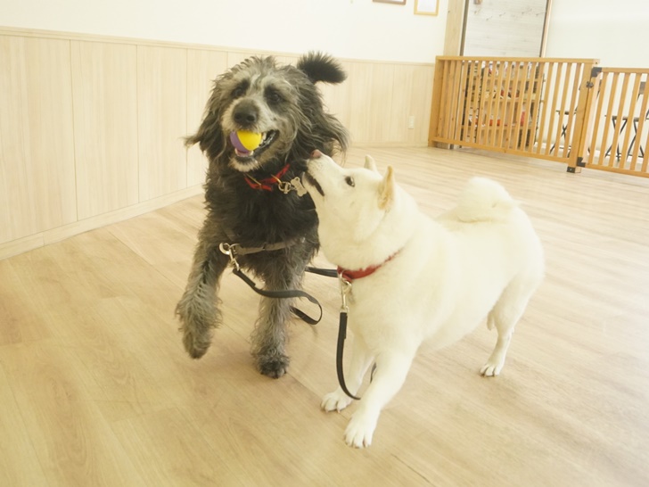 ふたりのフリータイム前半は各々「のんびりしよっ」「ボールボールぅ~」とマイペースに過ごしていましたが、ハル君が持つボールがどんどん魅力的に思えてきたりき君( *´艸`)