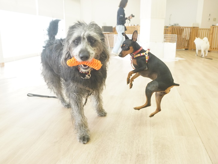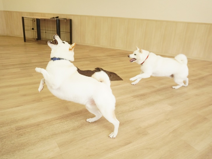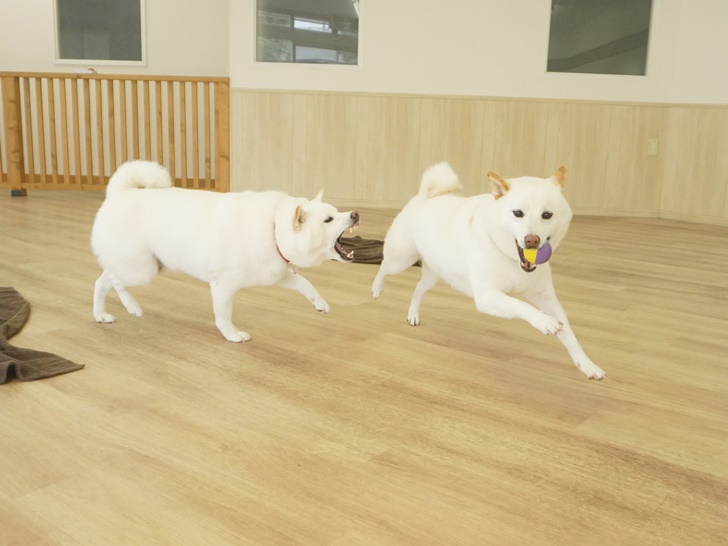 朝イチのフリータイムでは、「わぁ~い♪今日もいっぱい走るよ~」と絶好調なにこちゃんを見て「僕も~♫」とルンルンで追いかけっこをしていたみく君でした(^O^)/