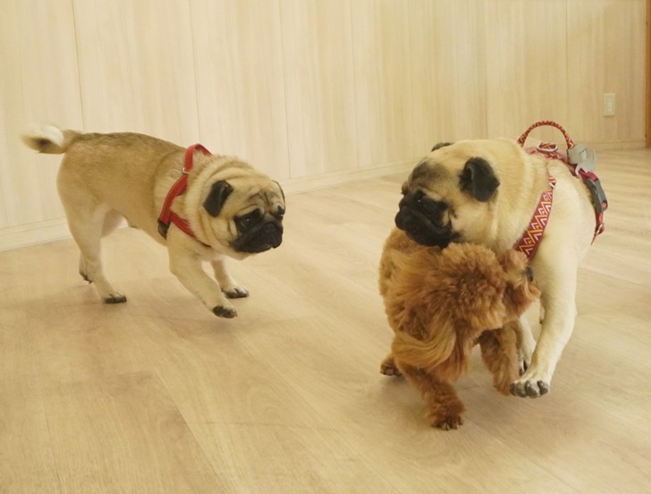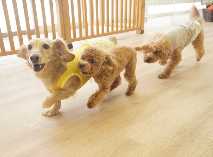 ニオイチェックが終わると「いっちょやりますか!!」と3頭で追いかけっこが始まりました♪