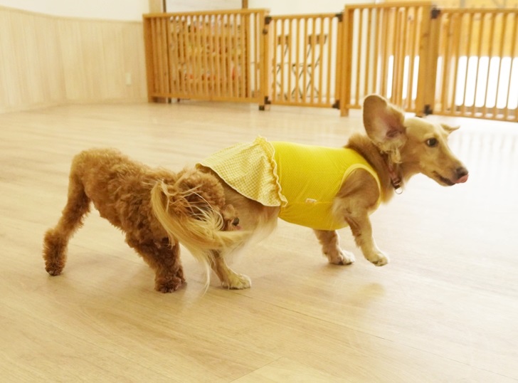 お友達に体をスリスリしたり、お尻をトンと当てて