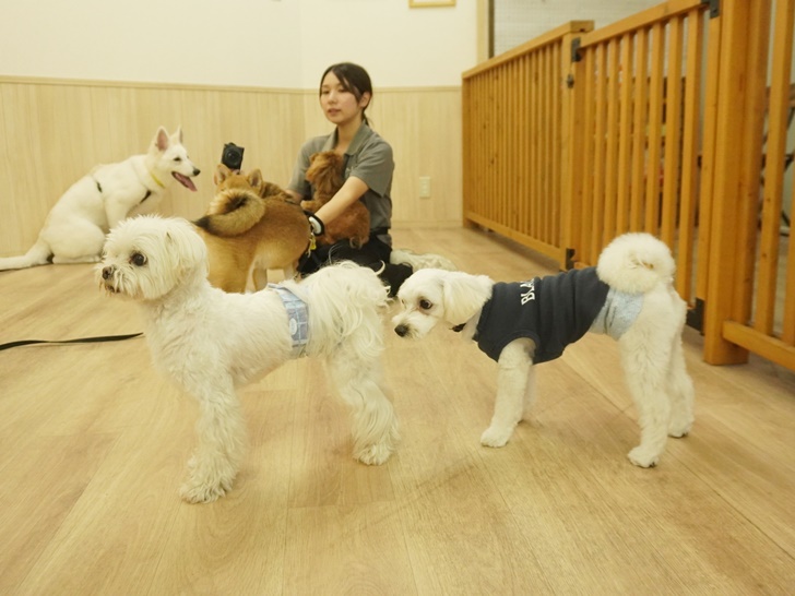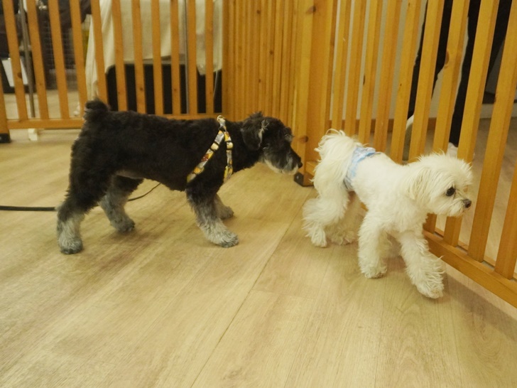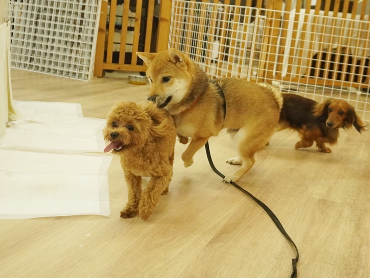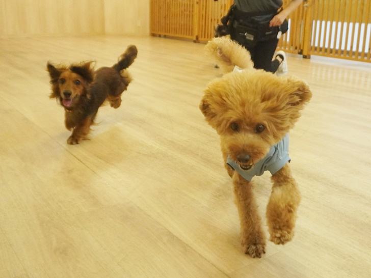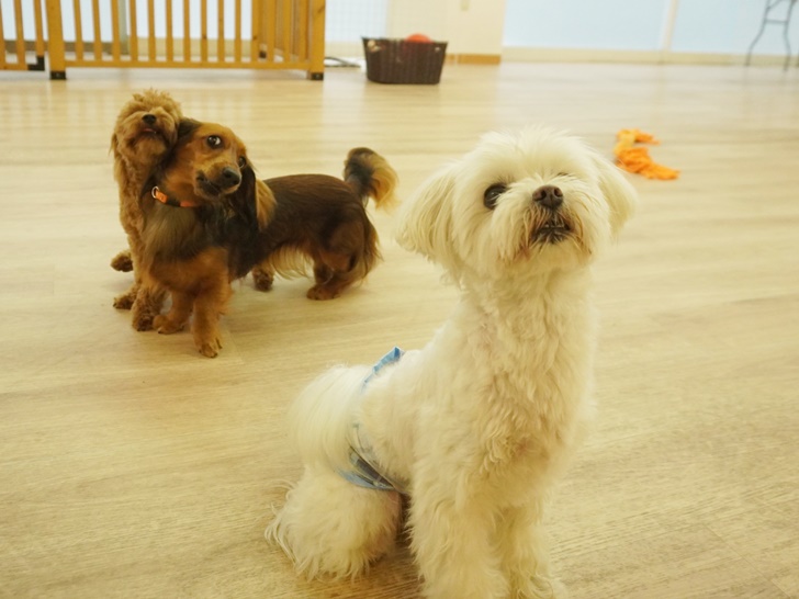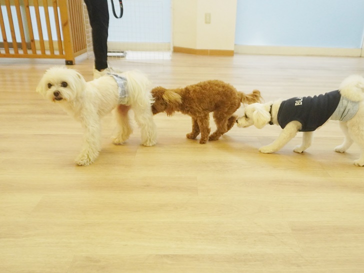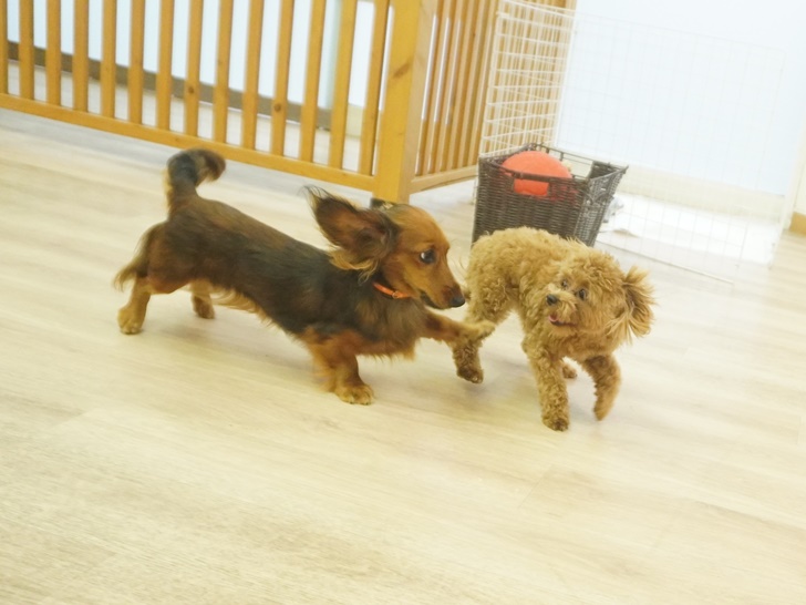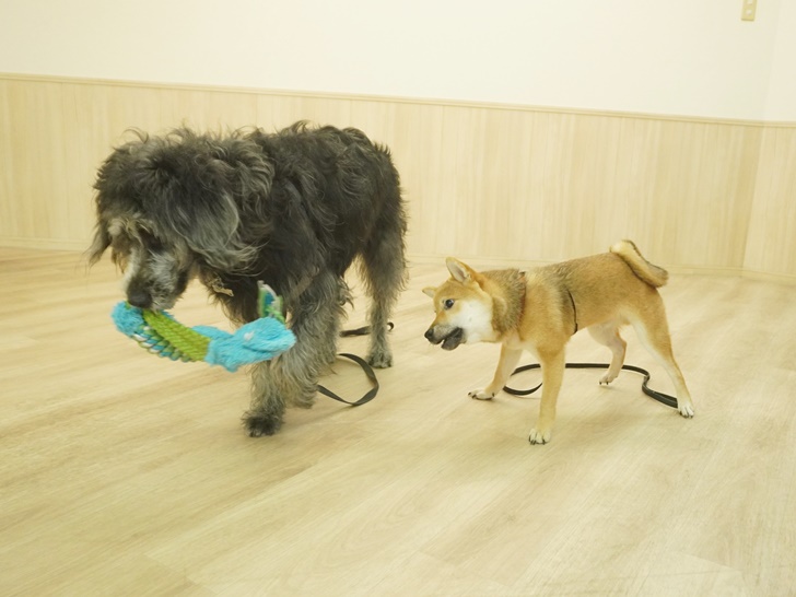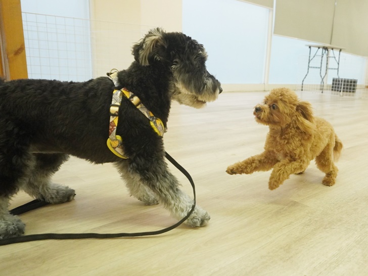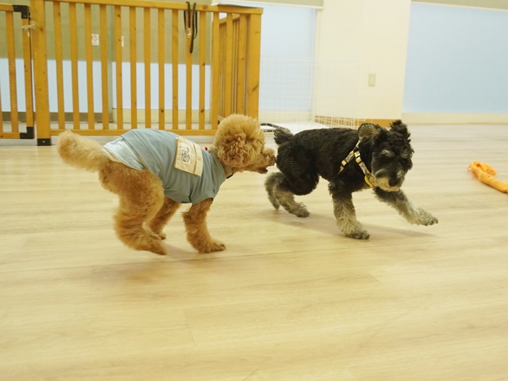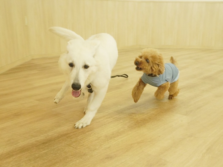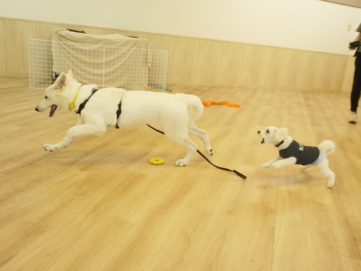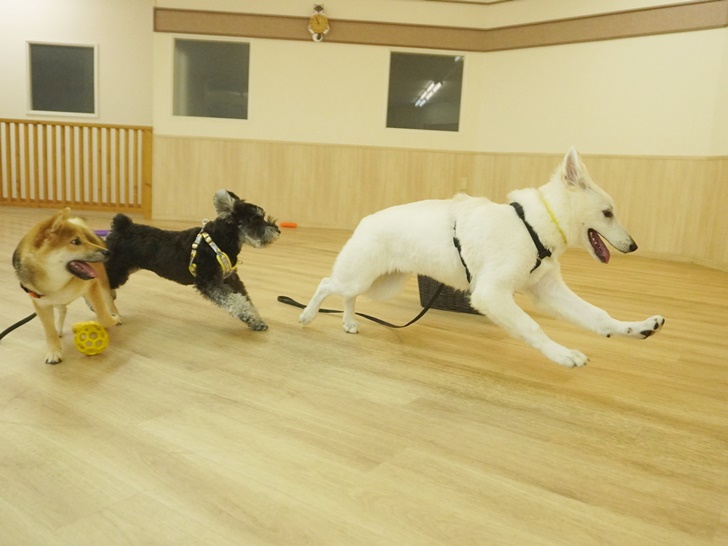 ベルちゃんは、ちょっぴり大きな子には「なにっ!?」とピリッとする事もありましたが、ご機嫌なネージュちゃんを見ていたら「やっぱりあたしも入れて~!」と追いかけっこに参加したくなっていたのでした♪