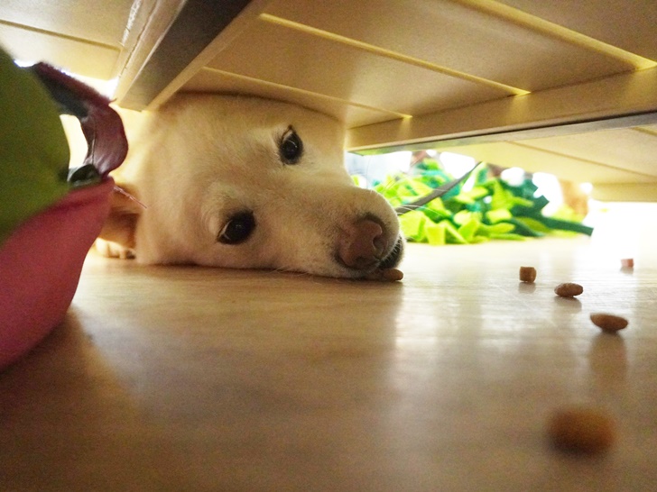 スノコの下にあるオヤツをGETすべく「あとちょっとなんだけどなぁ~」と顔をグイグイ押し込んで、無事に沢山のオヤツを食べる事が出来ていたのでした☆
