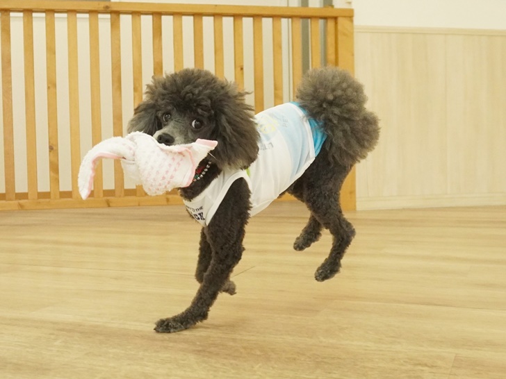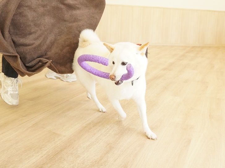 タオルを転がすと同時に「まてぇ~い!!」とスライディングして、タオルをGETしていましたよ(*^▽^*)
