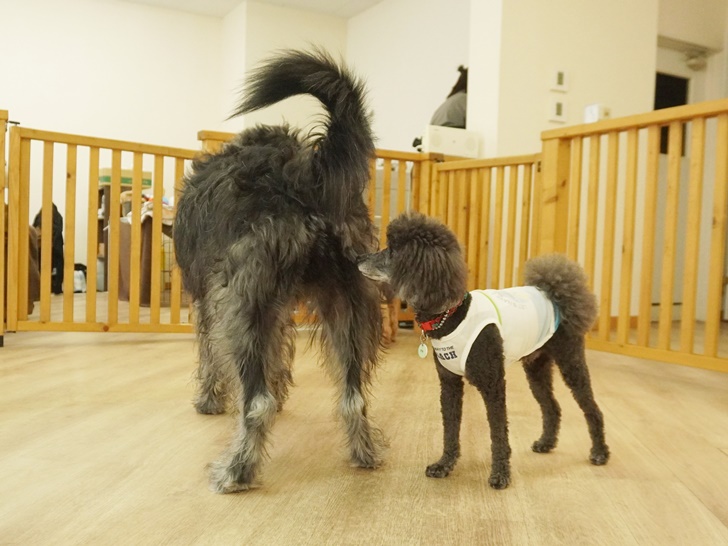 ルピ君が「お水まだかな~??」とスタッフを待っているうちに、アル君はそっと近づいてオチリをクンクン( *´艸`)
