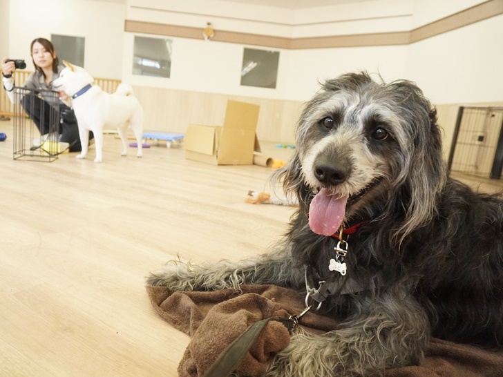 ティーちゃんがフリースペースにやって来た時には、ニコちゃんが段ボールの上に君臨しておりました✨