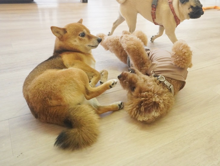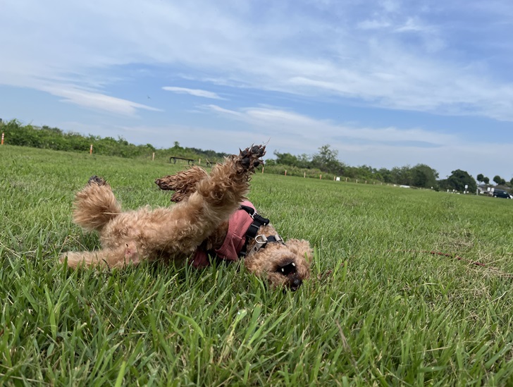 広場では芝生に体をすりすりして、気持ちよさそうでした(*^-^*)