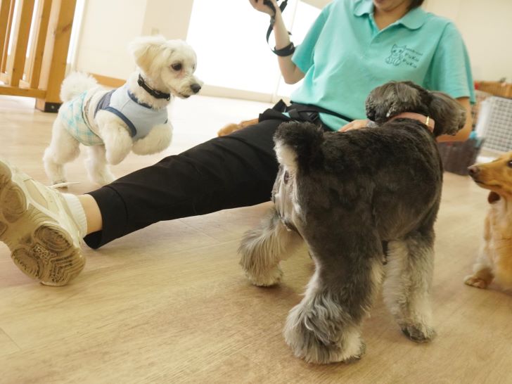 スタッフの足の上も軽々飛び越えるみく君に驚きっΣ(・ω・ノ)ノ!
